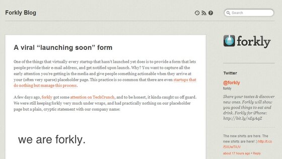 It’s now not sufficient simply to inform guests that you simply’ll “add them to the notification listing” once you launch. On this “always-on” day and age, we’ve got on-demand expectations. Even if you happen to’re not 100% sure once you’ll launch, giving customers an approximate timeframe, similar to Summer season or perhaps a countdown will assist maintain them . In Forkly’s case above, they even went as far as to element their progress on their Tumblr weblog, together with how they needed to shortly create a viral sharing script after the early deluge of visitors.